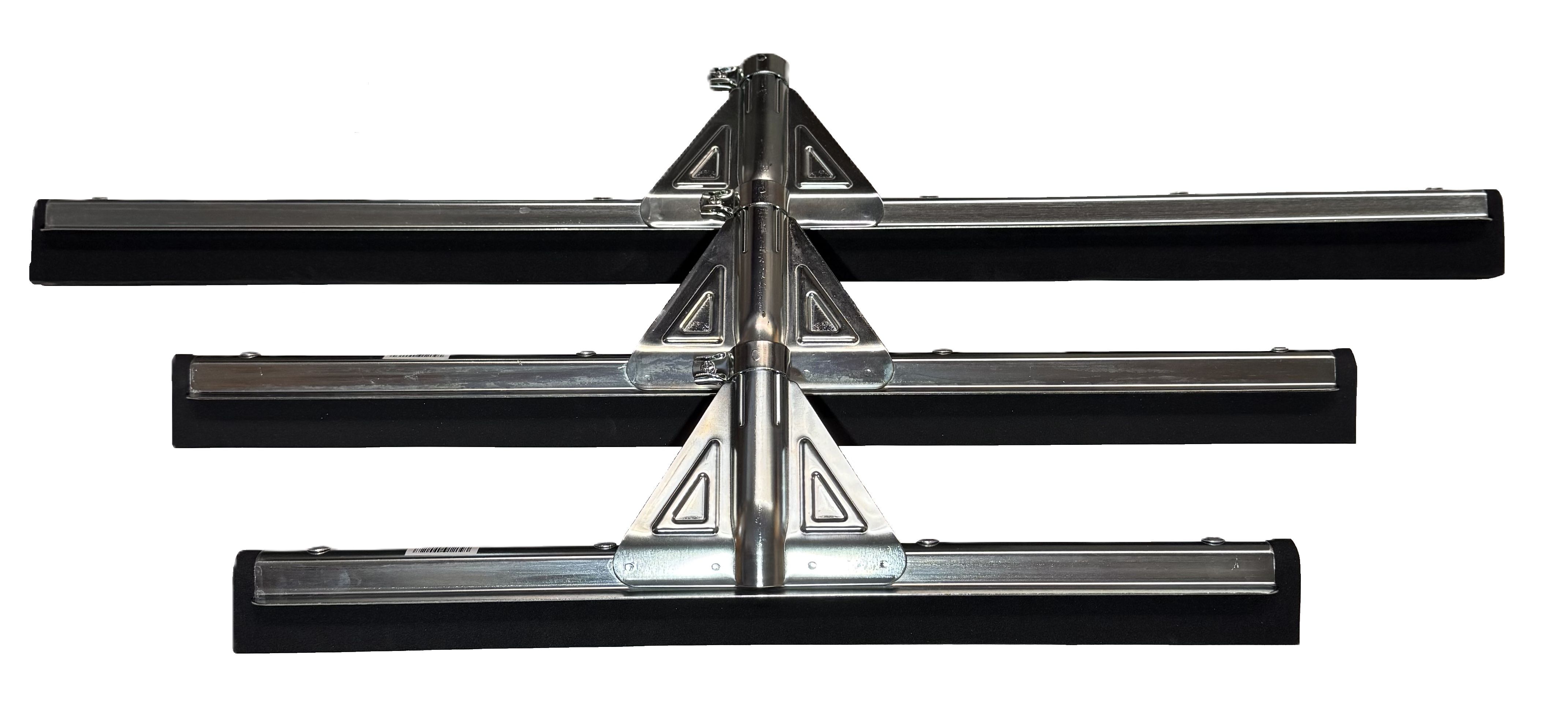Kovová stěrka na podlahu v rozměrech 45, 55 a 75 cm s černou zesílenou gumou.